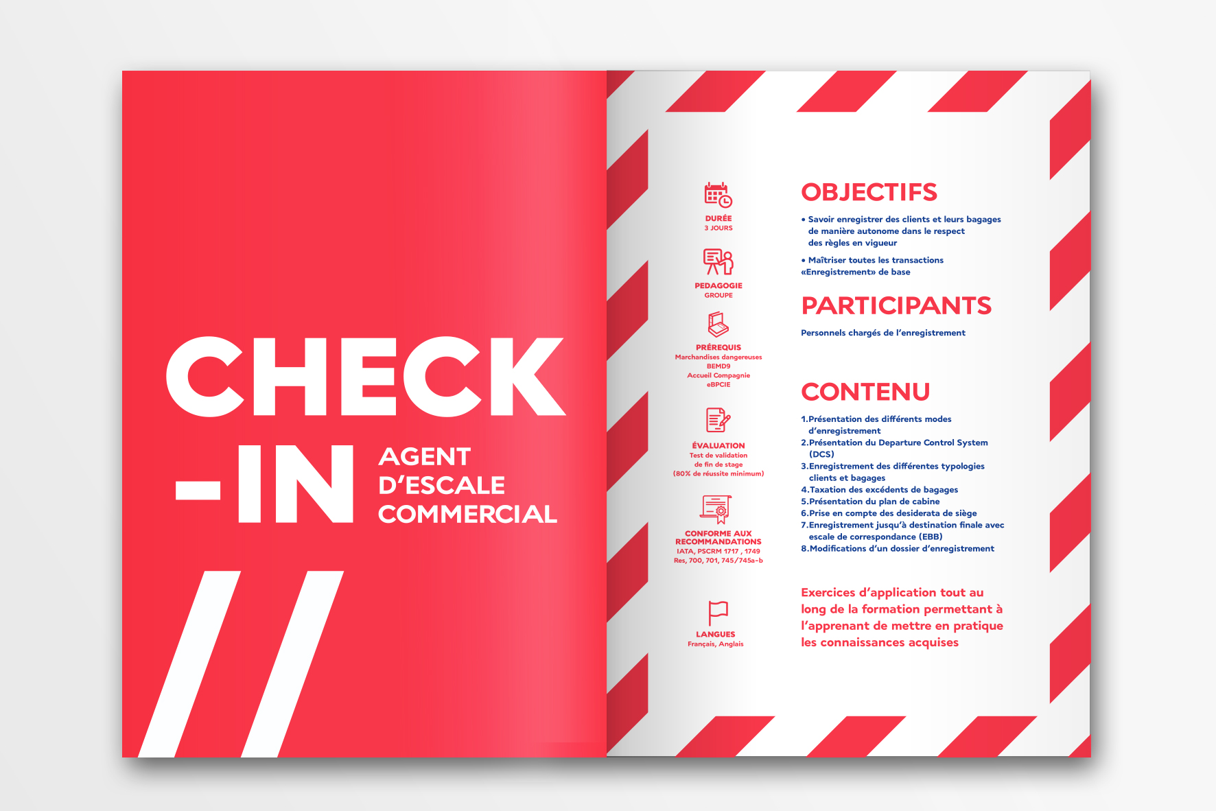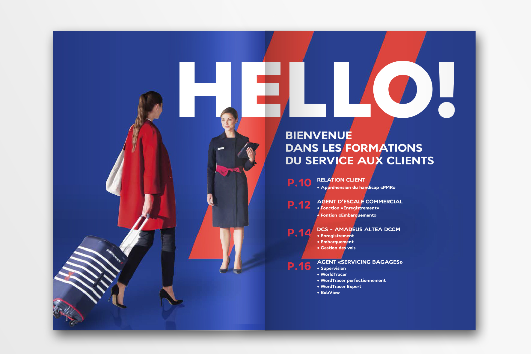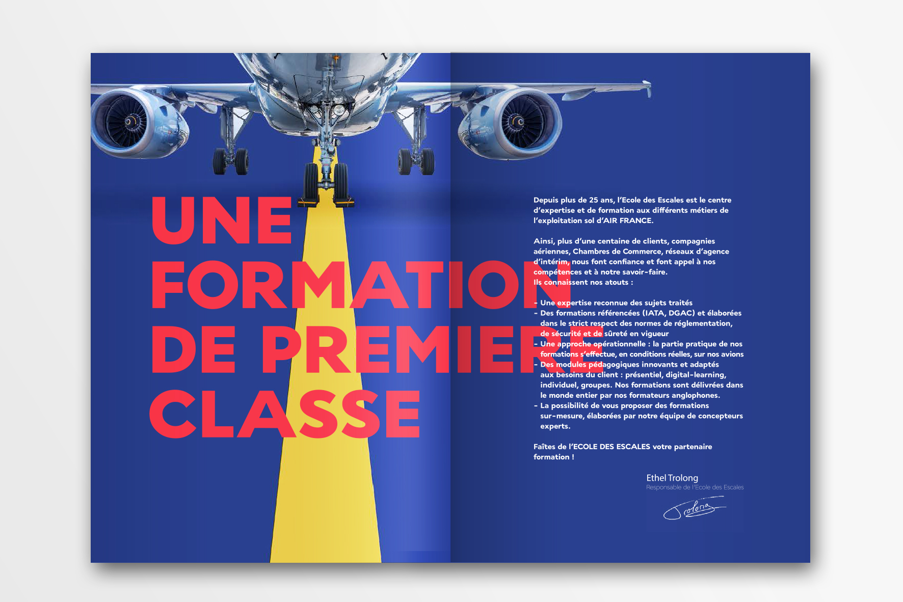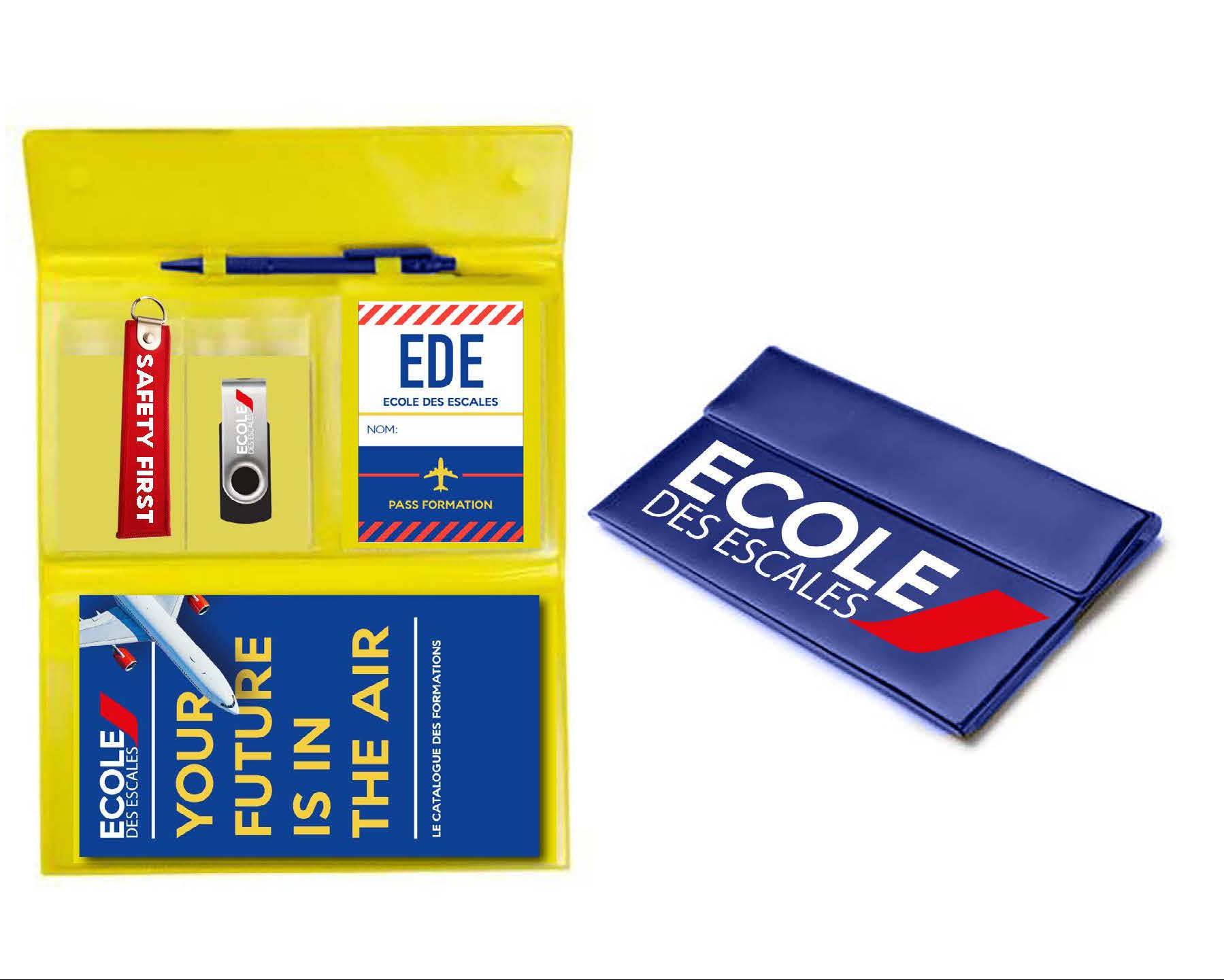 Conception and Creation of the new branding and brochure for L’EDE, a school owned by Air France preparing for on site (airport) jobs such as security agent, pisteur, check-in hostess etc.